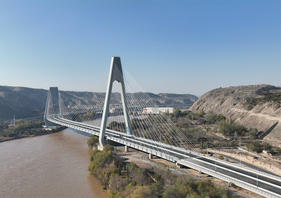 由中國二冶承建的蘭州柴家峽黃河大橋,是目前國內(nèi)曲率半徑最小跨度最大的“S”型曲線雙塔跨黃河斜拉橋。該橋?yàn)椤癆”字型高低塔斜拉索鋼箱梁橋結(jié)構(gòu),橋長1250米,共設(shè)置56對平行鋼絲斜拉索。大橋構(gòu)筑了蘭州東西向貫穿城市的核心綠脈,對帶動(dòng)城區(qū)經(jīng)濟(jì)和城市向外拓展具有十分重要的使命,同時(shí)也為“絲綢之路”經(jīng)濟(jì)帶建設(shè)提供重要支點(diǎn)。